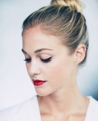 Apply foundation to your lips—it lets the red color ring true. Then add lip liner, which works with the foundation to make your color last; it also prevents the red from bleeding into fine lines around your lips. Use a shade that matches your lipstick or gloss (try Quickliner for Lips Intense). Outline your lips, fill them in completely with the liner, and blend like crazy for a full wash of color. Lip liner also has serious staying power—great backup in case your top color wears off.
